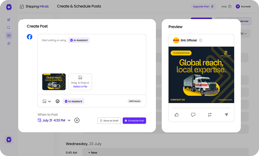 Before using Shipping Minds, the marketing team relied on disconnected tools for writing, scheduling, and collaboration. Content creation cycles were slow, brand messaging varied across platforms, and campaign approvals required excessive manual coordination. Scheduling posts individually on each platform consumed valuable time
