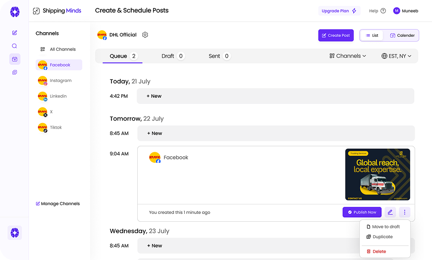 Project Overview Shipping Minds was adopted by a mid-sized e-commerce and direct-to-consumer brand operating across North America with an in-house marketing team managing content for multiple digital channels including social media, email, and paid campaigns.